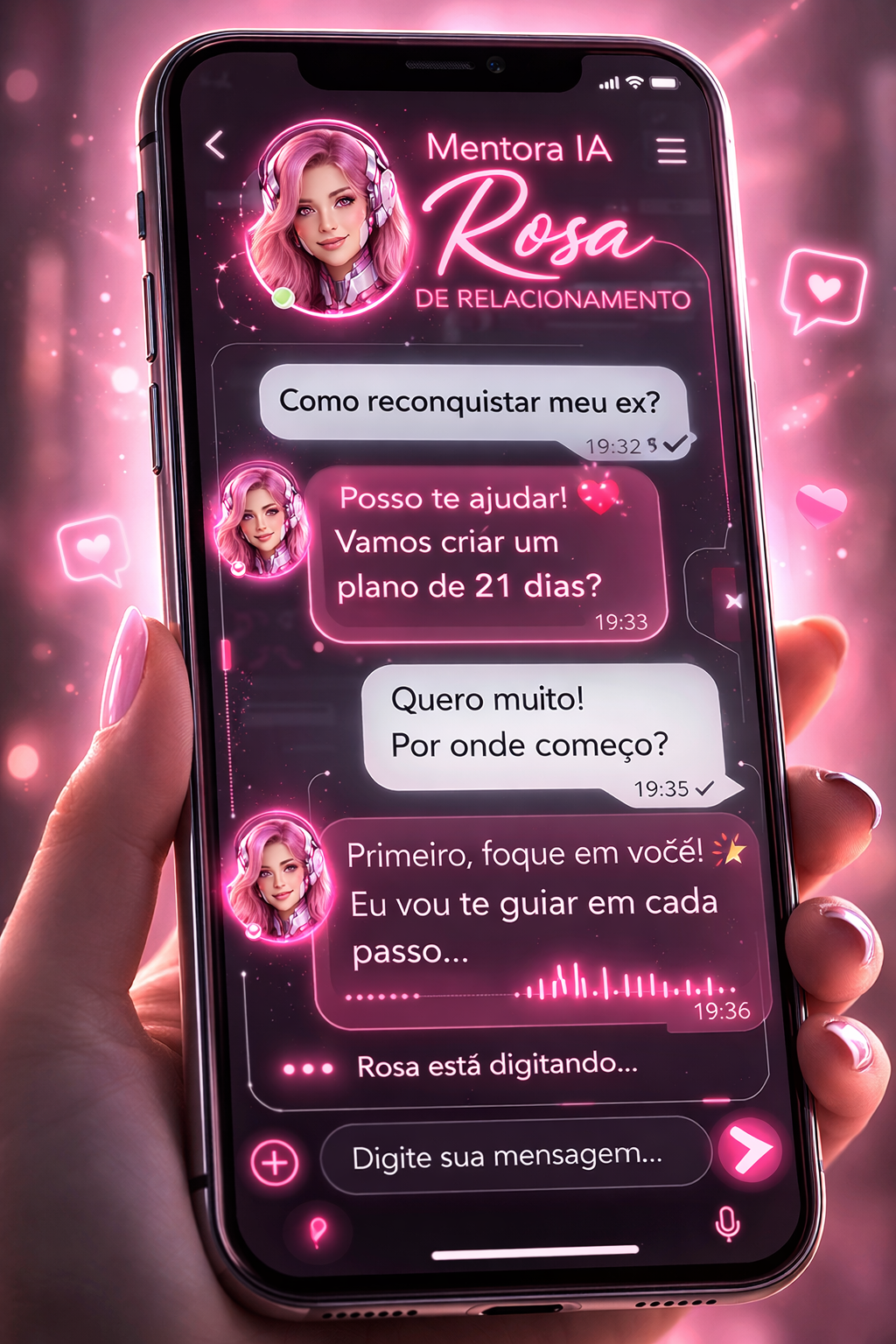 🎁 Bônus Exclusivo: A ROSA, Sua Mentora IA de Relacionamento, disponível 24h